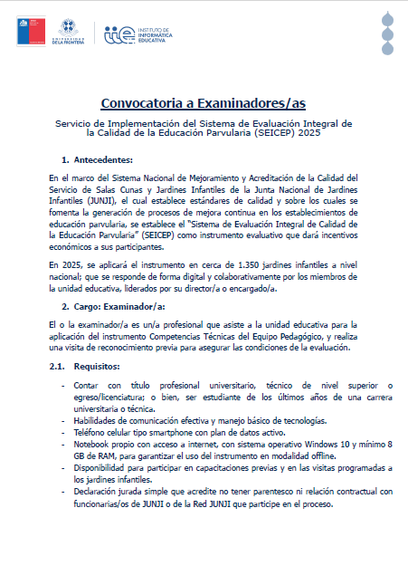 El Instituto de Informática Educativa de la Universidad de La Frontera te invita a postular como examinador/a del SEICEP 2025, un proceso nacional que evalúa competencias técnicas de equipos pedagógicos de jardines infantiles en todo Chile.